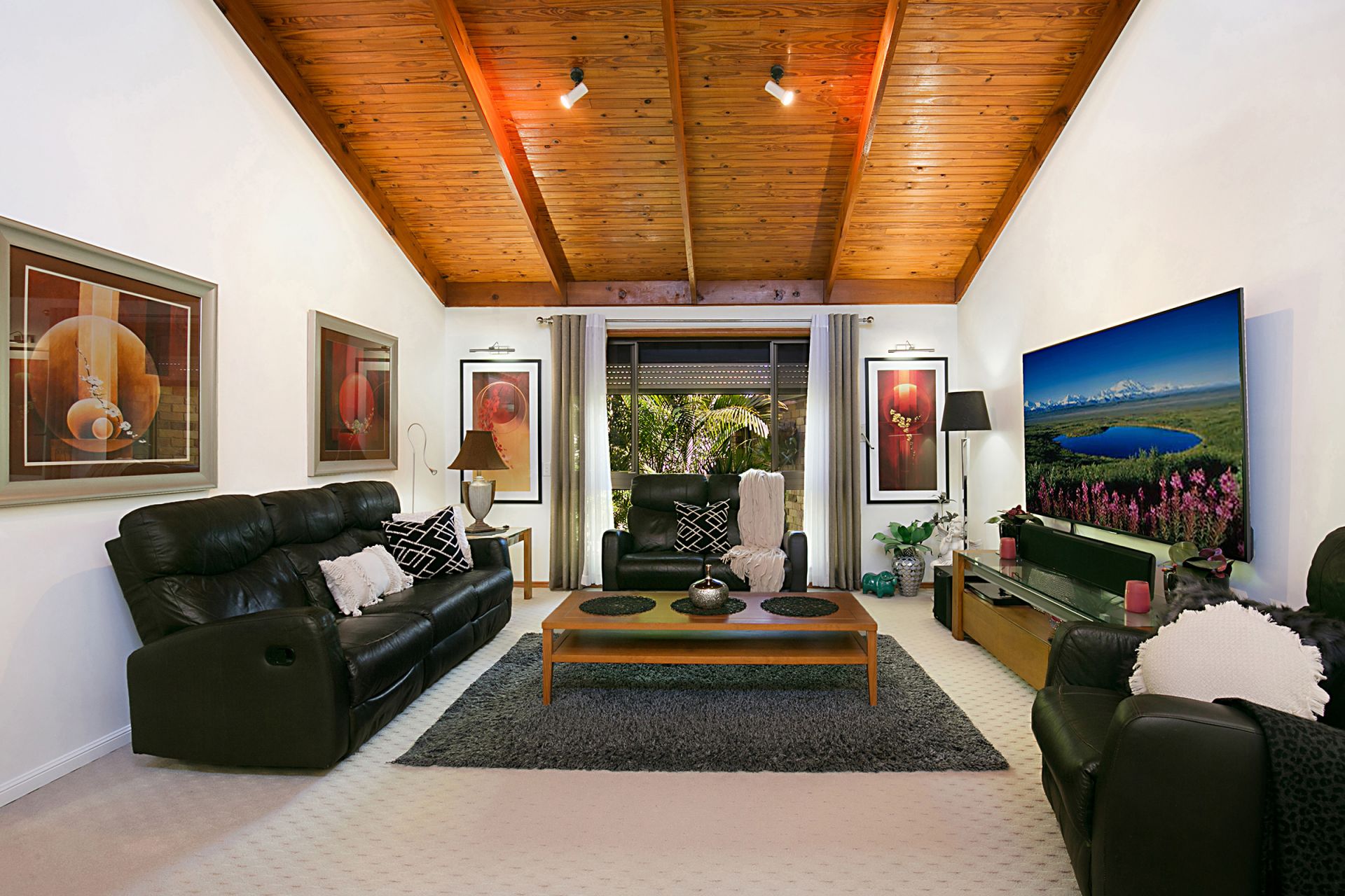 An expansive lounge room with soaring cathedral ceilings is a showstopper on entry. The warmth of the raked timber ceiling is complemented by fresh white walls, keeping the look modern & the vibe down to earth. Travelling further through the home is a second living area which can be utilised as a spacious dining zone if preferred. All areas enjoy a tranquil garden outlook.