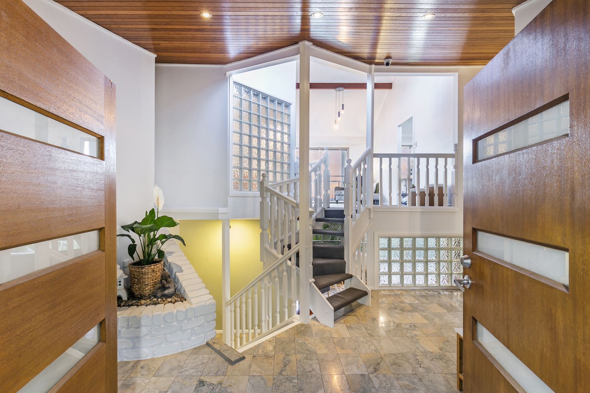 Step through the impressive double doors and into this cleverly designed property that will delight & inspire you at every corner. Unfolding over three split levels, soaring ceilings with interesting architectural angles add to the sense of wide- open space. Vast panels of glass bring the views right in, and marble flooring adds to the luxe look and feel of the home.