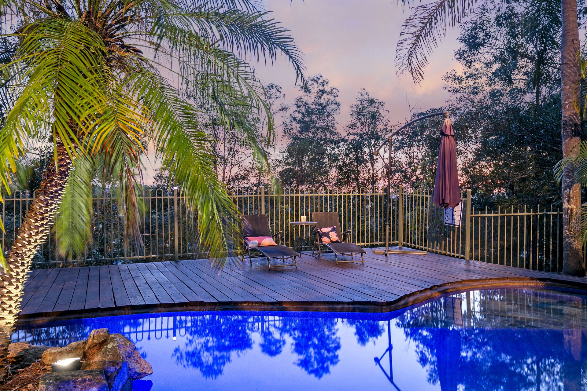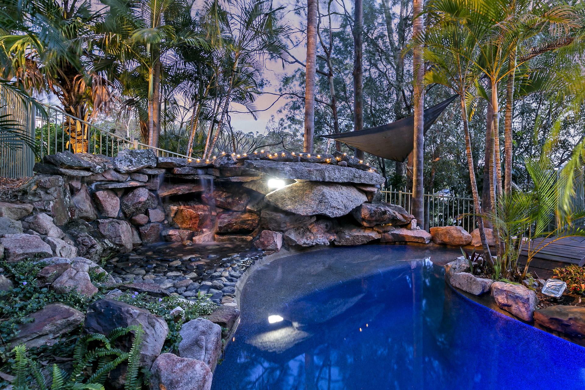 One of the stars of the home is the incredible resort style pool area. A superb waterfall features here, along with a built-in island with palm trees and a spa. Relax poolside on the deck amongst the tropical landscaped oasis in total privacy.