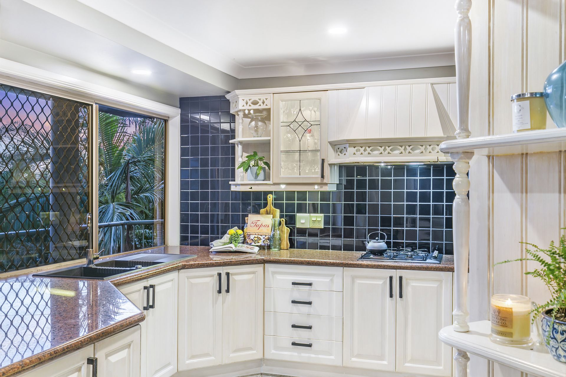 The elegant, European style kitchen comes complete with quality cabinetry, thick granite benchtops and gas cooking. Spilling out to the casual dining and entertaining deck, the kitchen is positioned for functional home life & easy entertaining.