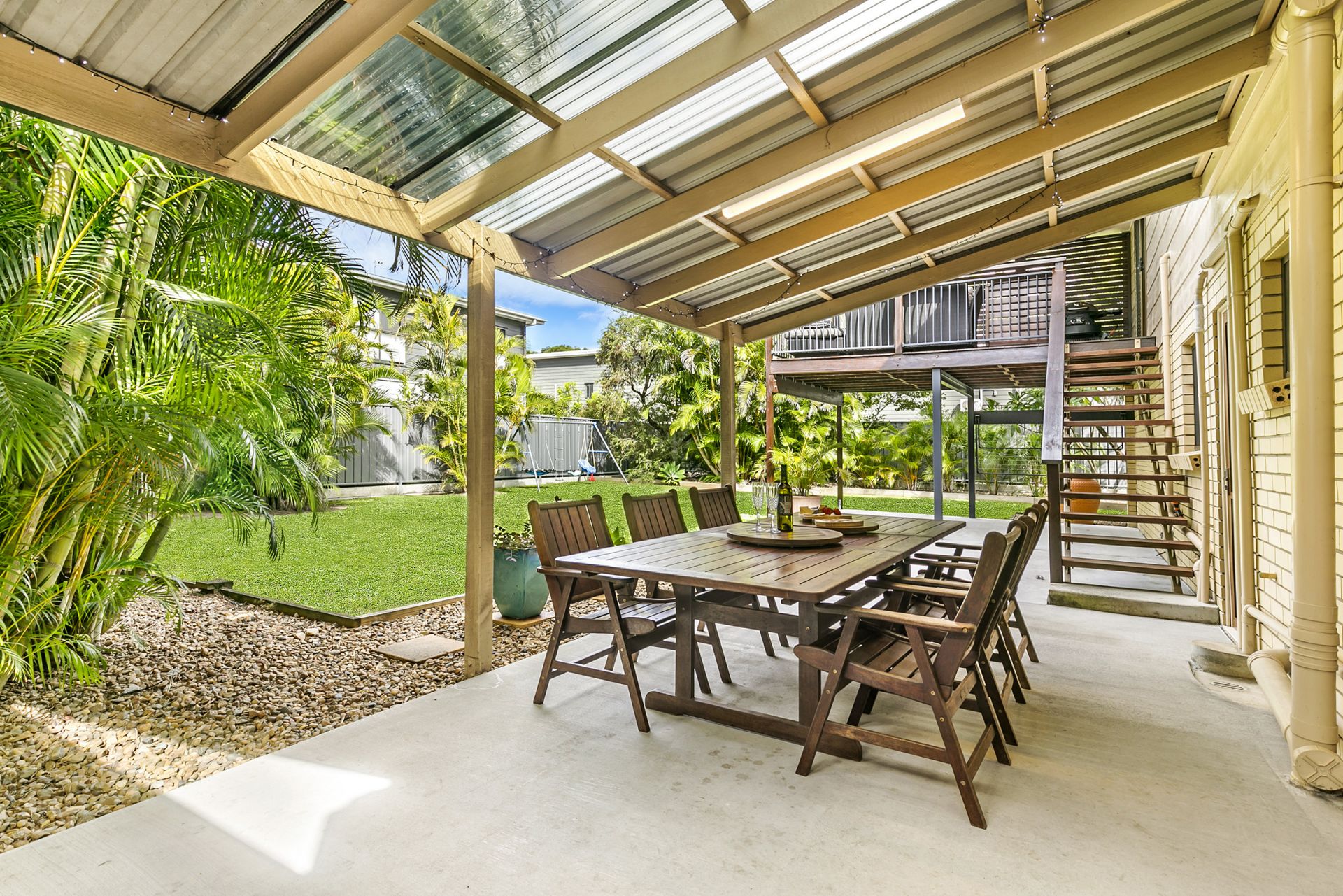 A spacious open plan living room flows through to a separate dining area adjacent the kitchen. This area flows right out to the upper covered deck, the perfect spot to relax and unwind.