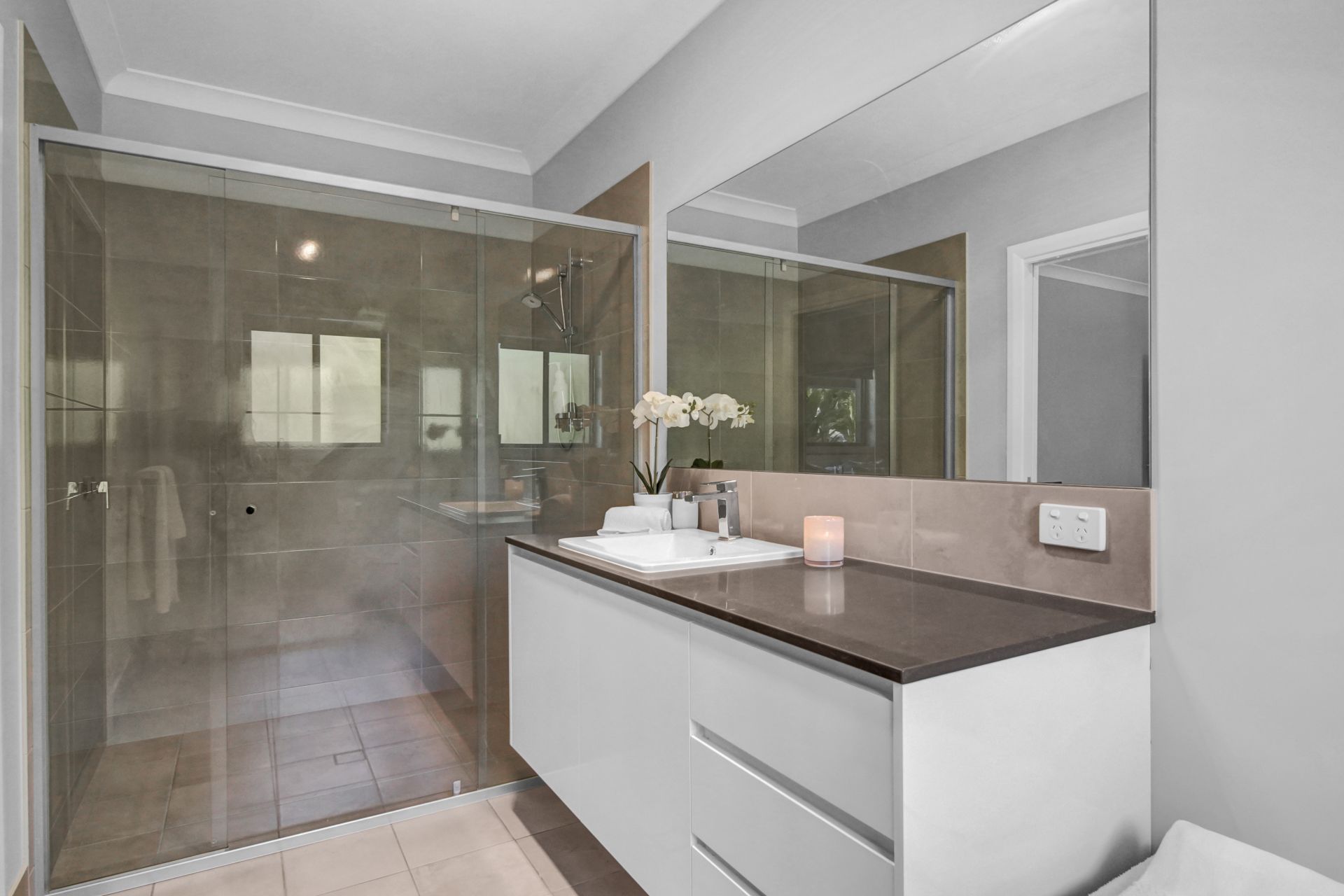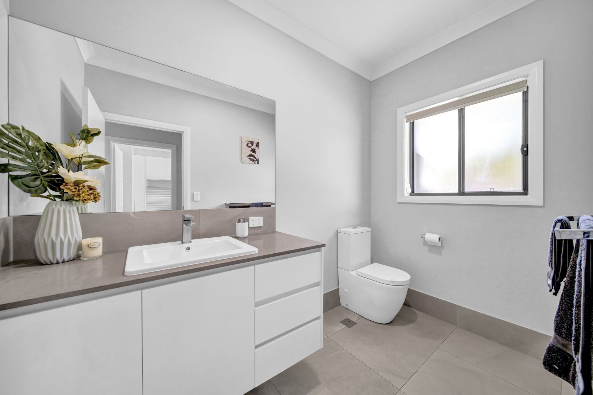 The opulent master suite is positioned for privacy and features a sublime ensuite with floating double basin vanity and handy his and hers storage sections, along with a double shower. The concealed behind the bed walk-through robe has been cleverly designed with its hanging racks and drawers displaying and storing your clothing and accessories beautifully.