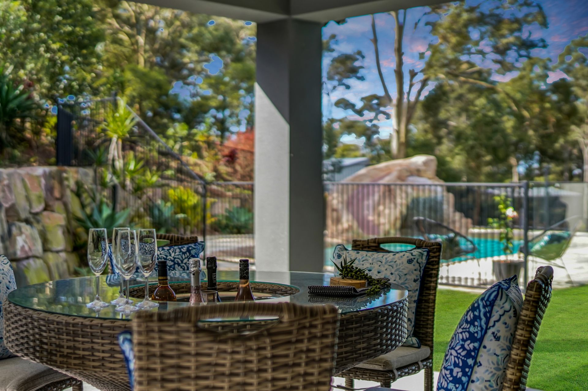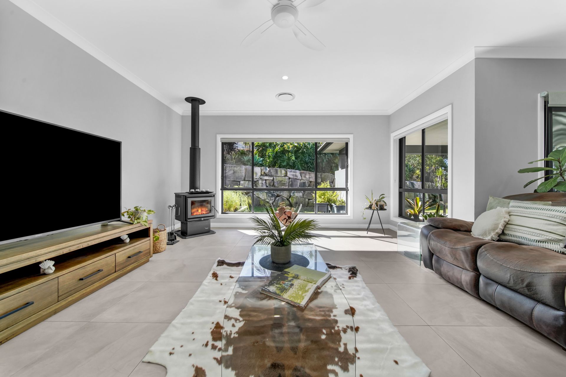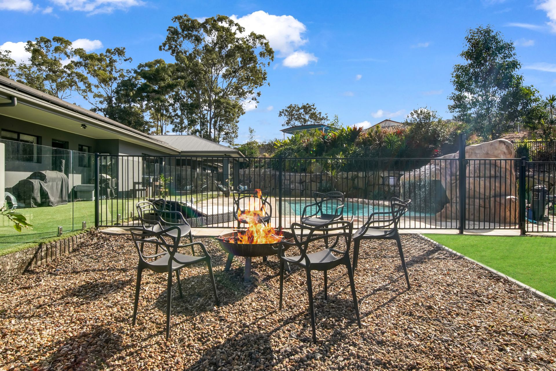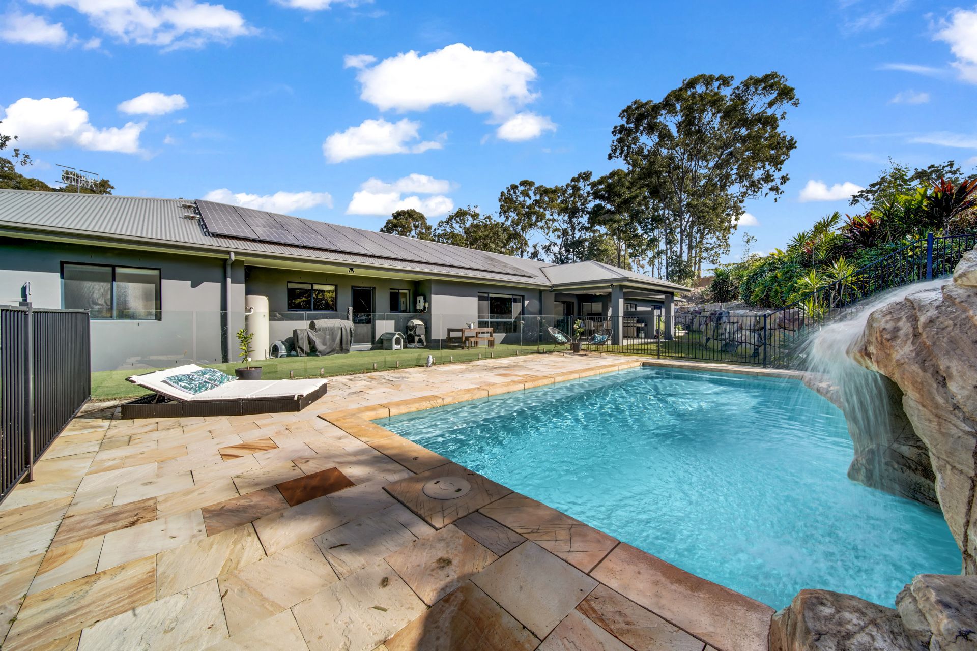 Providing an easy transition from the casual living and kitchen zone, is your expansive covered entertaining area. The party is in full swing in this enormous entertaining zone, where you can effortlessly cater for countless guests in style. This is where you will really experience the soothing nature of your acreage surrounds, as you gaze over established native gardens and watch the kids splash away in the inground saltwater pool, complete with grotto and slide. Enjoy many a night relaxing in the spa of your own private grotto - can life get any better than this?