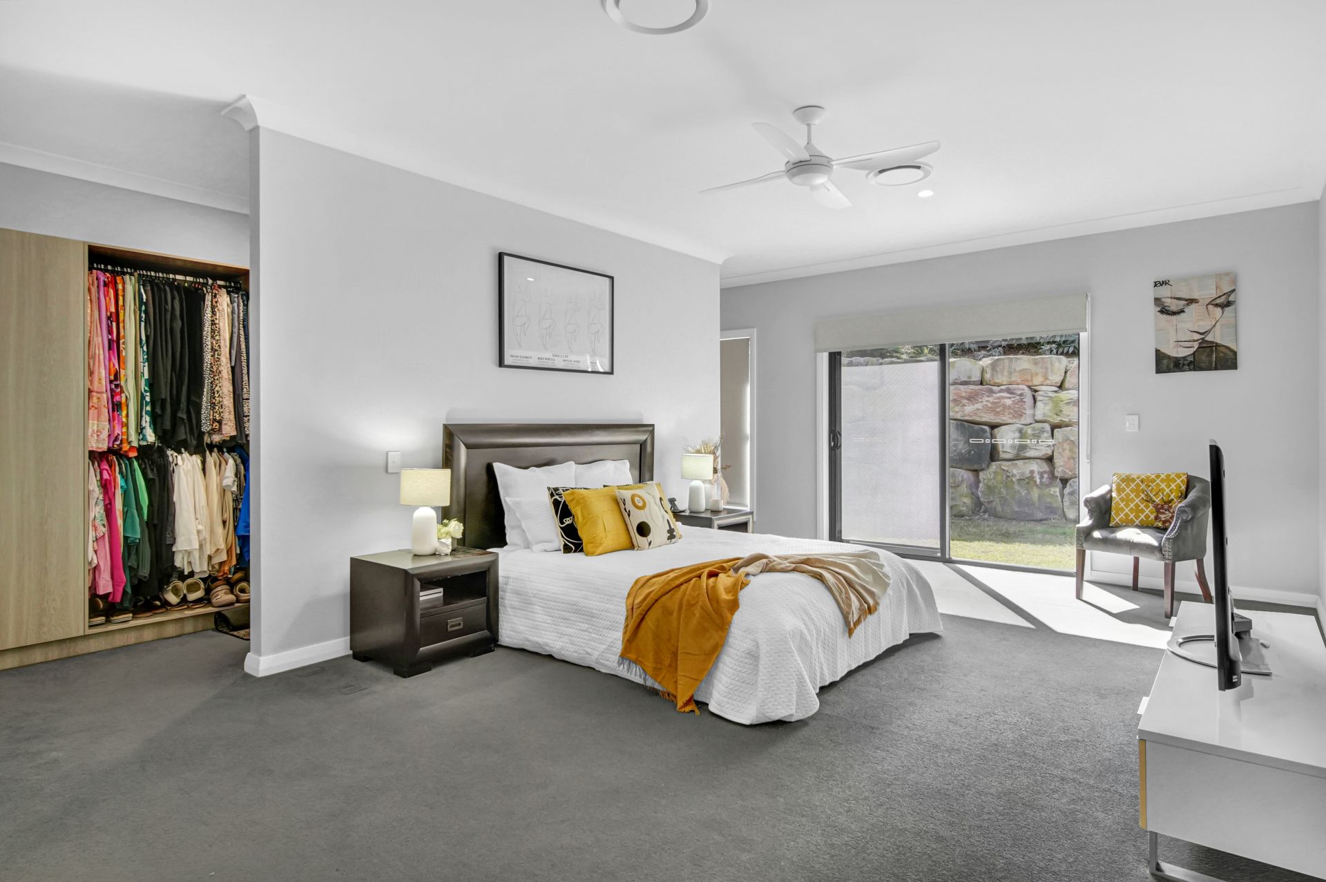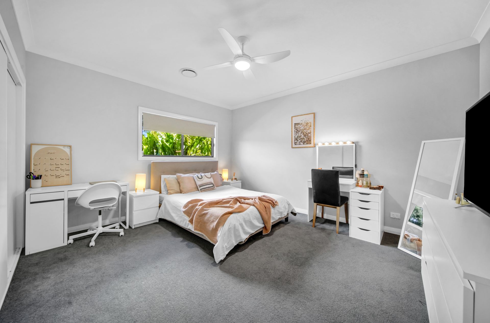 There are a total of five generously sized bedrooms and three bathrooms. All five bedrooms come complete with built-ins and ceiling fans and two with ensuites.
