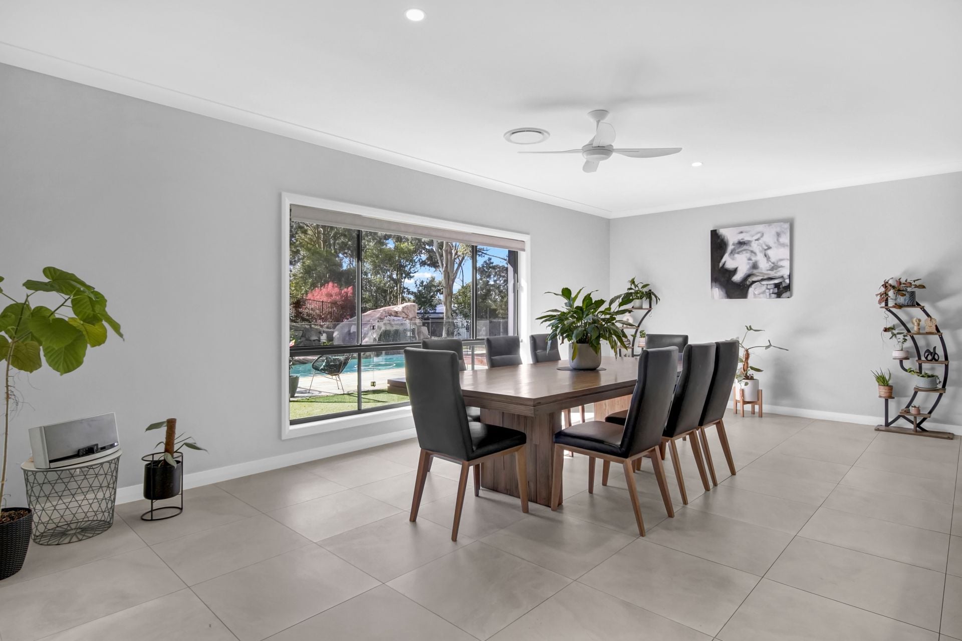 Entering the property via the circular driveway with its lush greenery and tranquil water features is reminiscent of arriving at a five-star resort. Sprawling over the one expansive level, everything about this home is free-flowing and SPACIOUS. The fresh cool-toned colour palette, open-plan layout, soaring high ceilings and beautiful leafy outlook make family life all the more enjoyable.