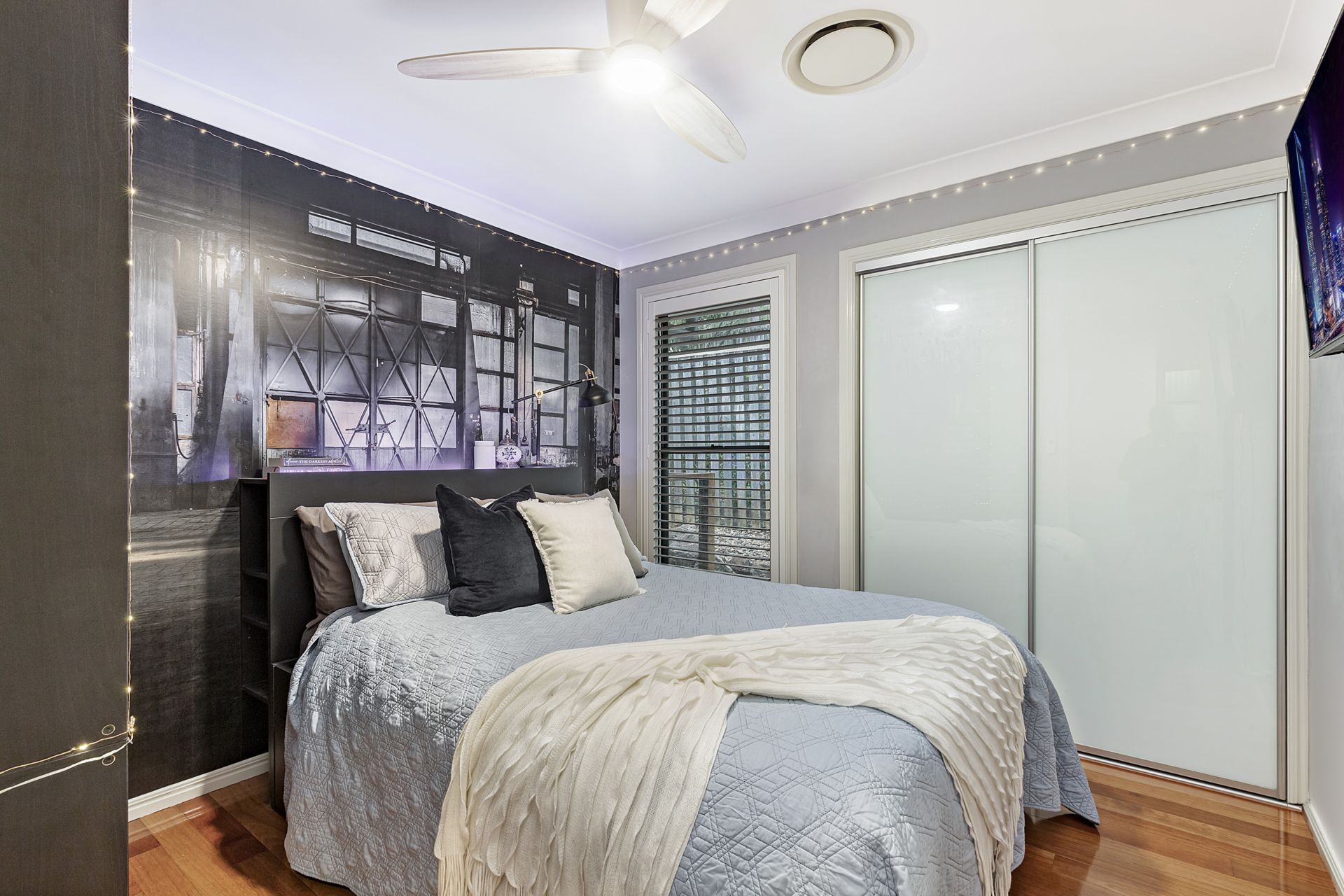Uniquely different, the home unfolds over two split-levels. Timber flooring adds to the warmth and charm, and fresh white shutters throughout add a luxe look & feel.