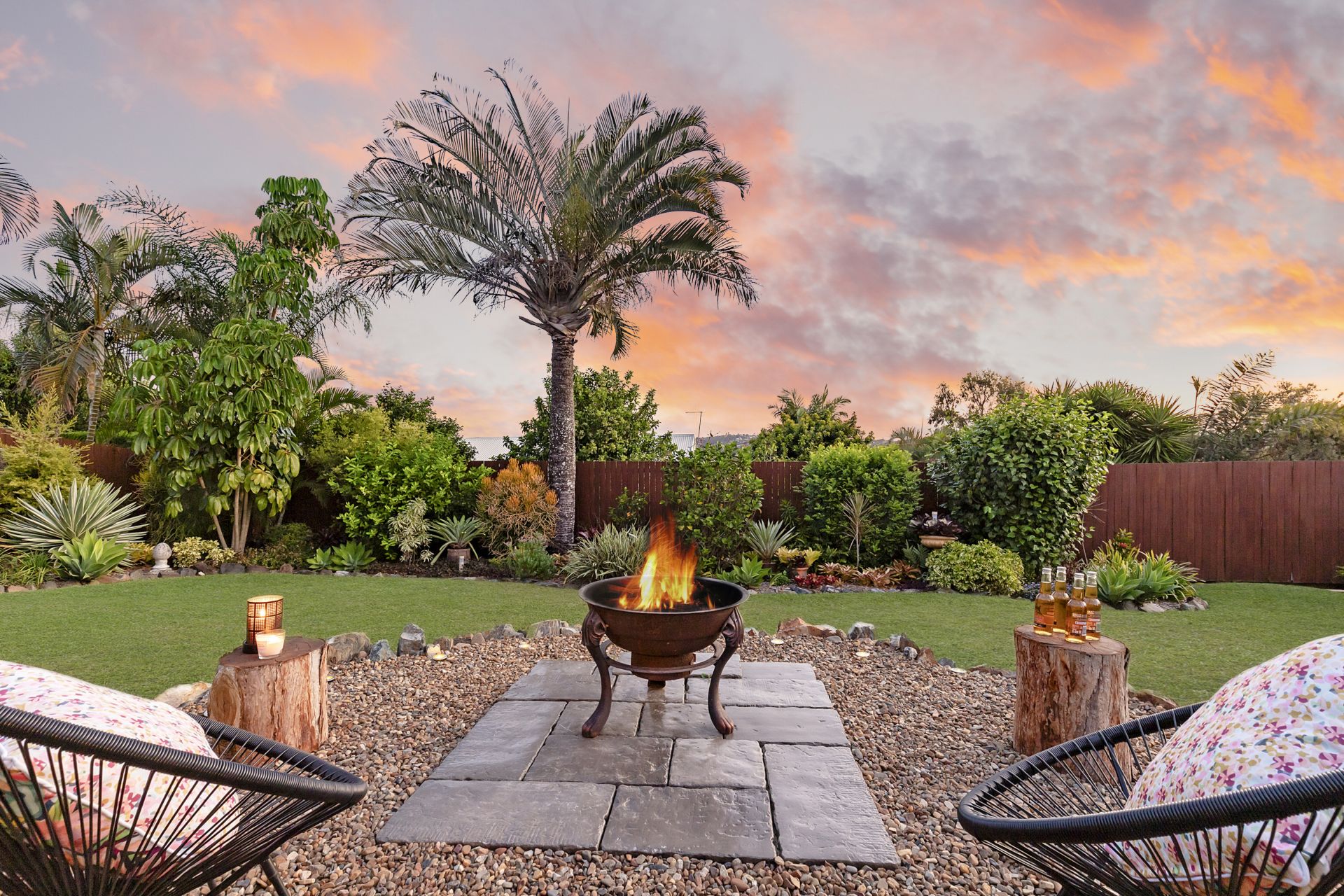 A firepit area in the rear yard is the perfect spot to relax with friends as the sun sets over another day.