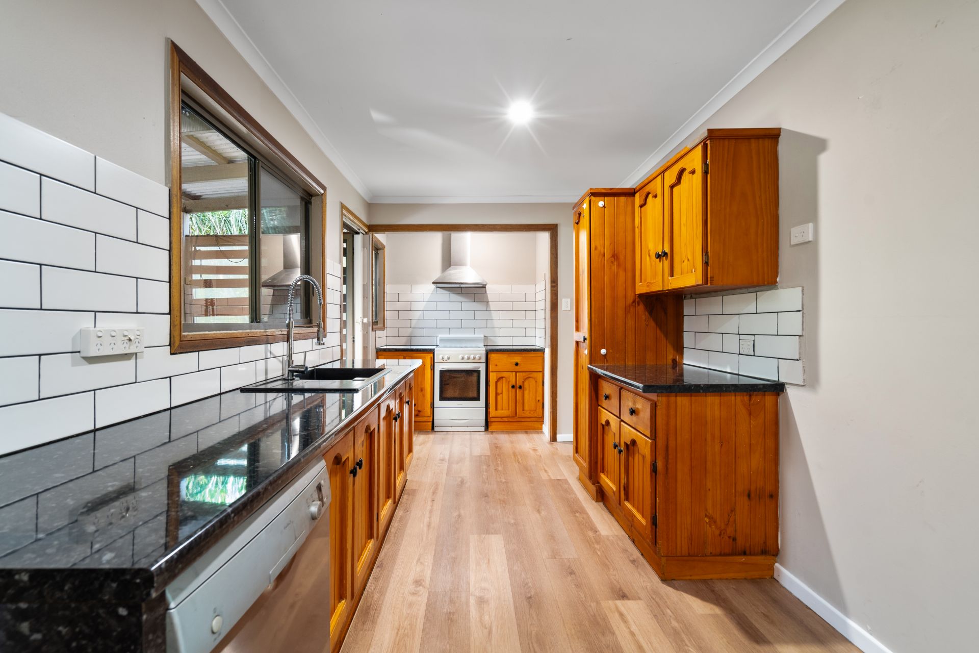 • Good sized timber kitchen with stainless steel dishwasher, Westinghouse stove/cooktop, pantry and plenty of bench and cupboard space