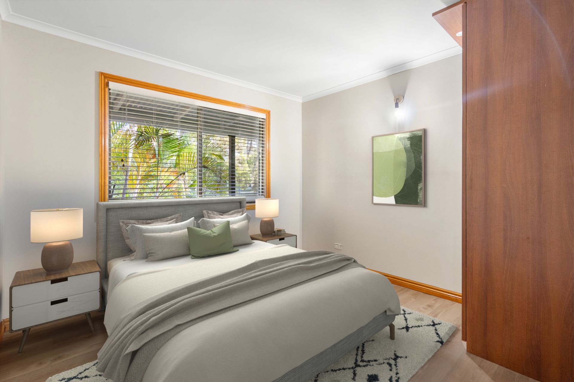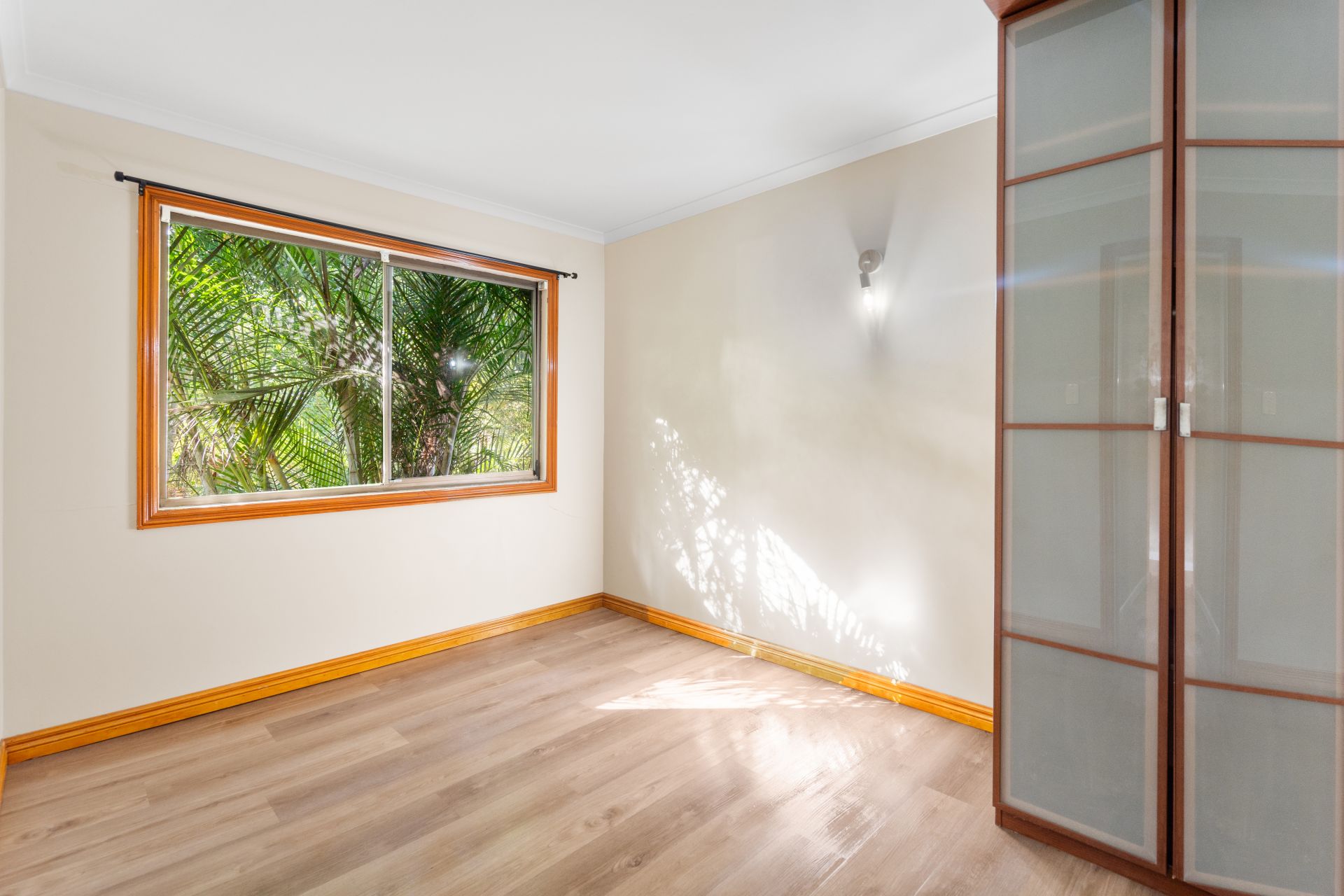 • Three bedrooms, master with a full wall of built-ins, air-conditioning and ceiling fan (sliding door to front verandah)
