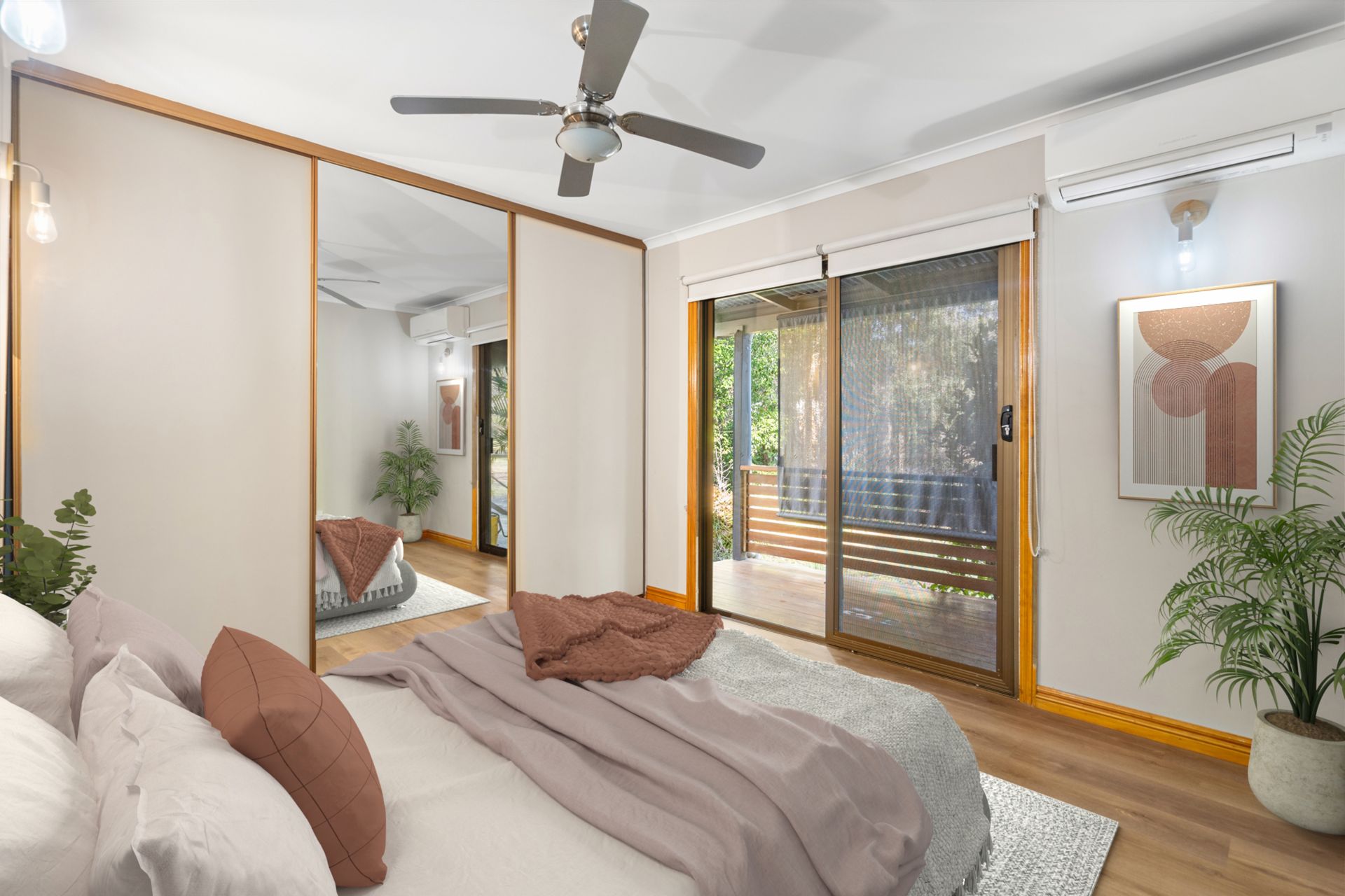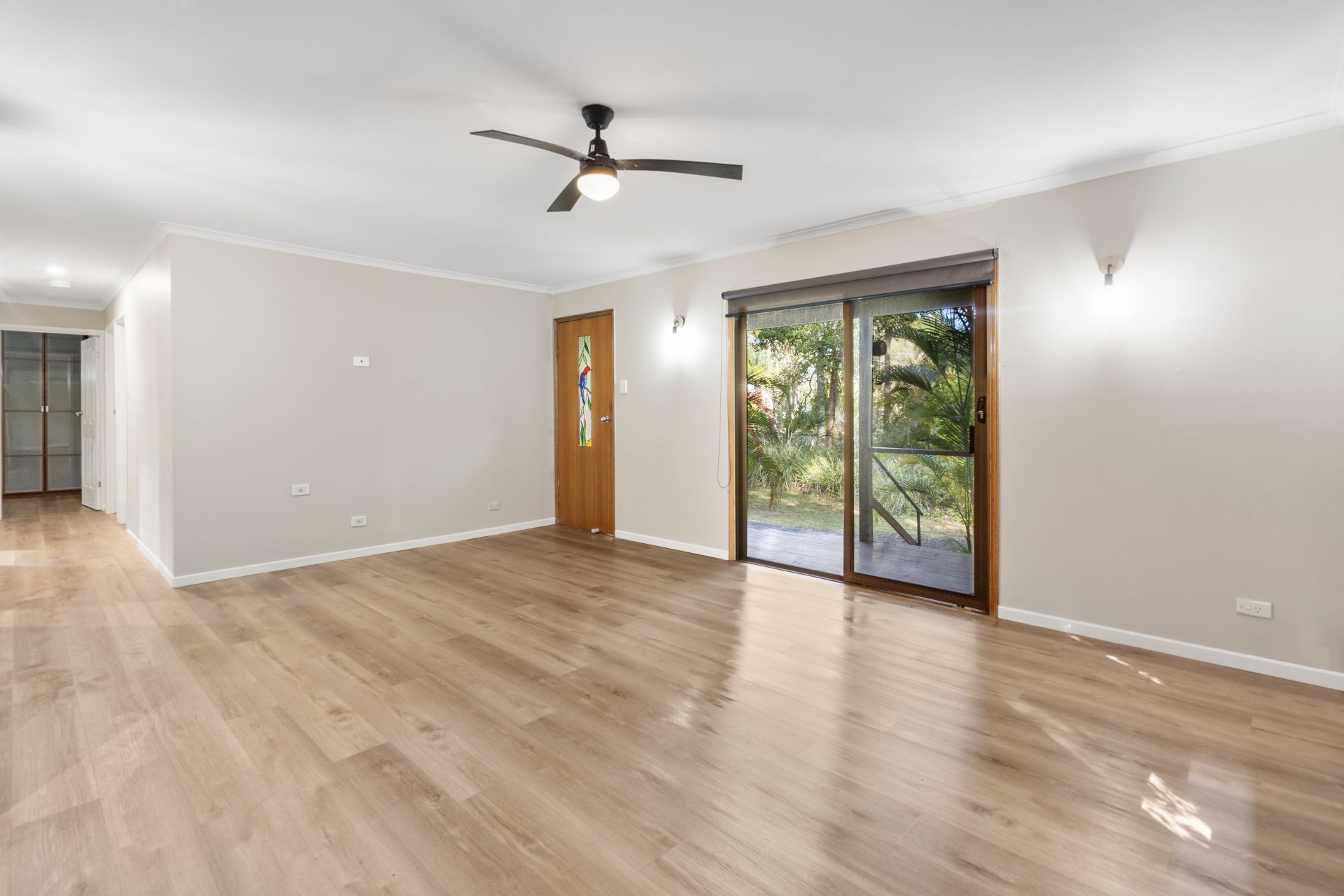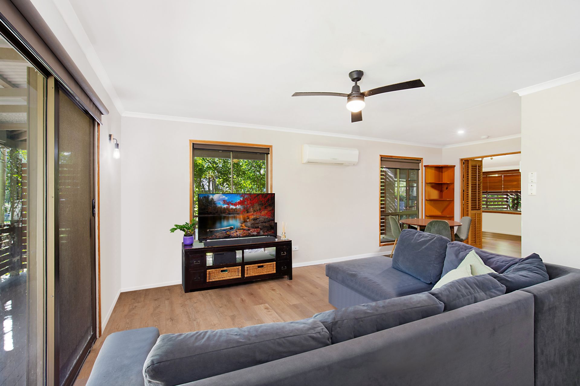 • Lounge room with air conditioning, ceiling fan & glass slider