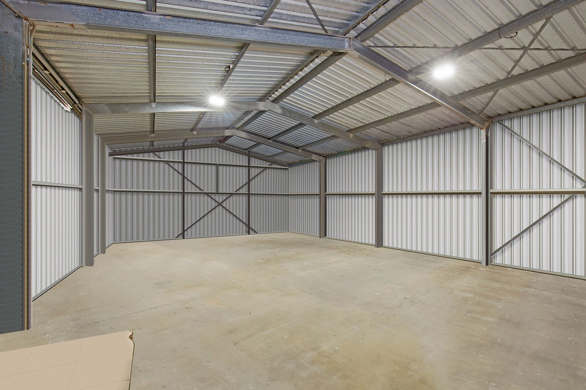 • The powered shed has full drive through access via gates and measures 12M x 7.6M and is 3M in height