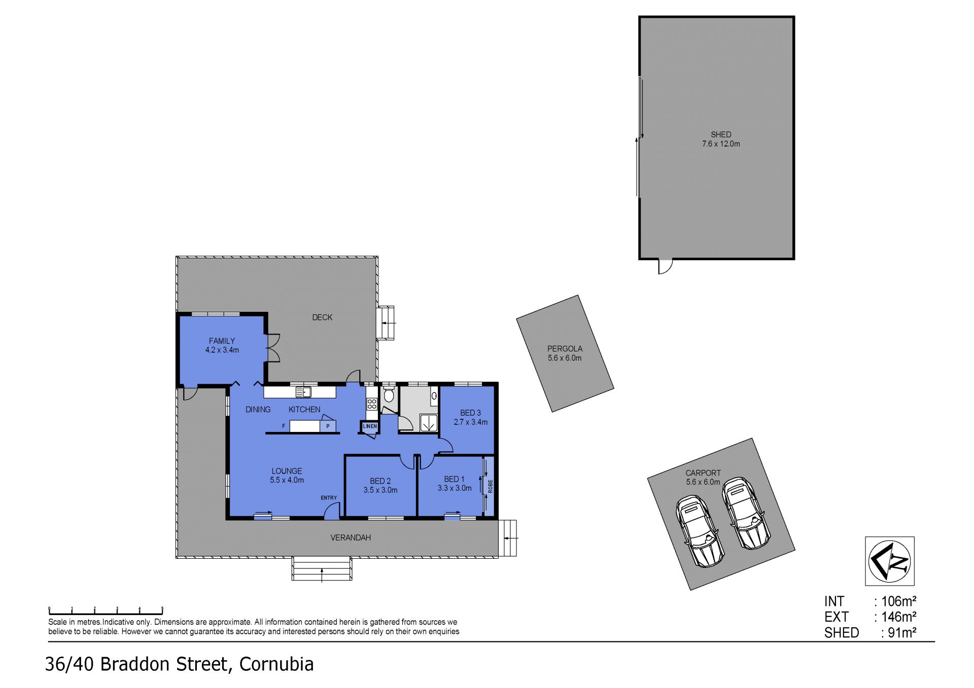 • Separate outdoor covered area next to a concreted pad, a perfect spot for entertaining or simply for extra storage space