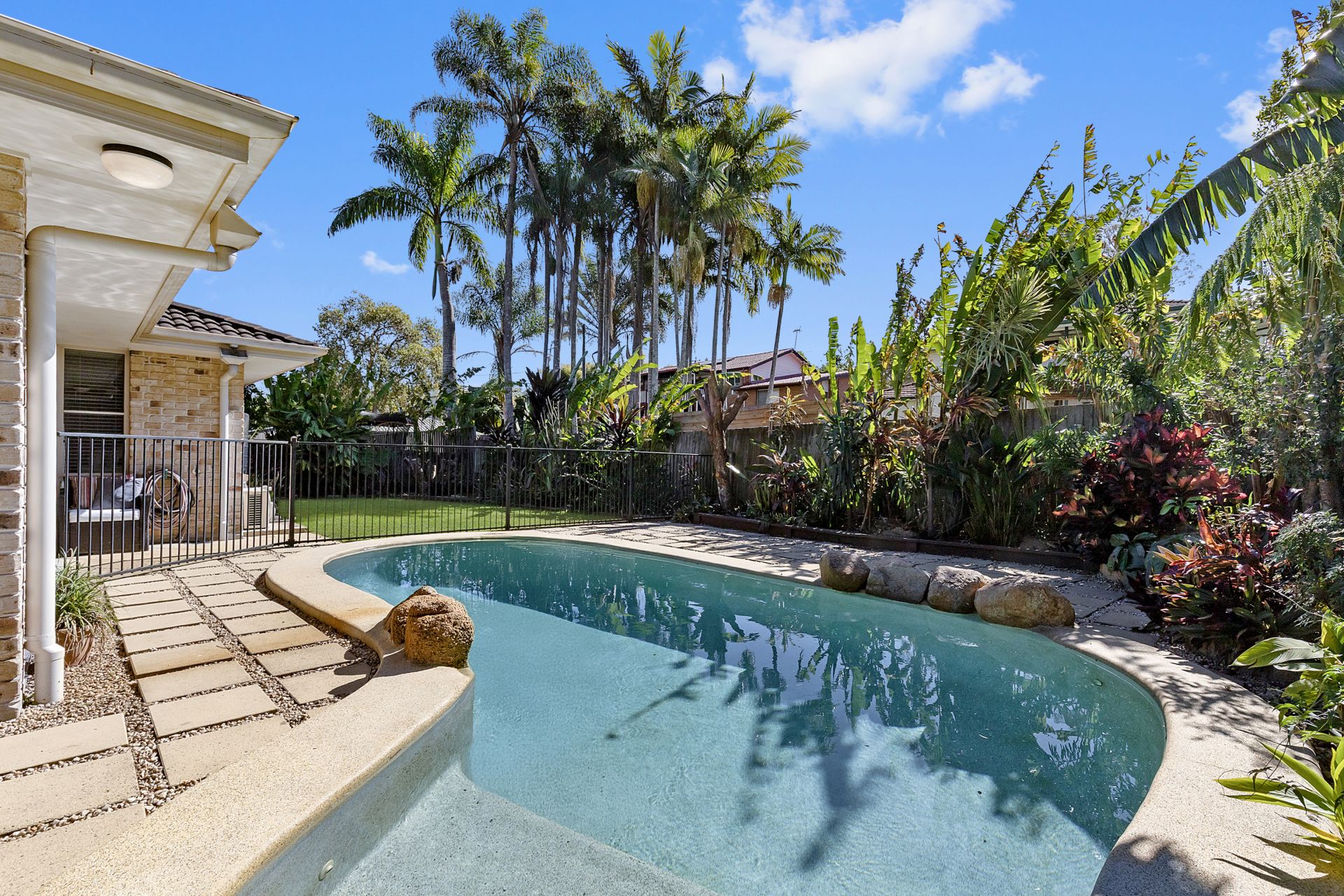 Step outside and enjoy your private and tranquil rear yard. A covered entertaining area is the perfect spot to relax with friends and oversee the kid's splash in the inground saltwater pool. The gardens have been neatly landscaped for year-round ease of maintenance.