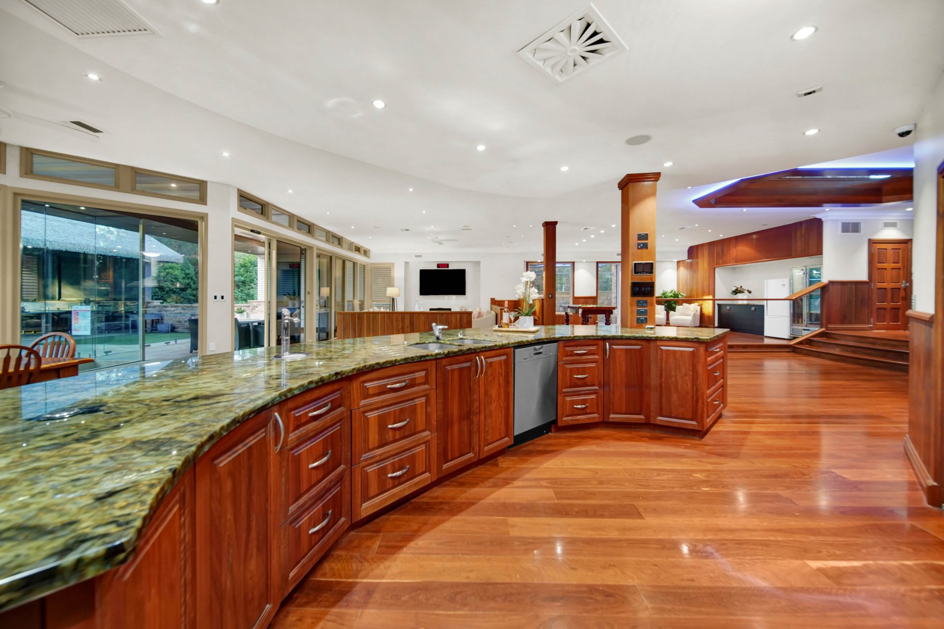 • From the entry foyer, step down to expansive casual open-plan living & dining zones.