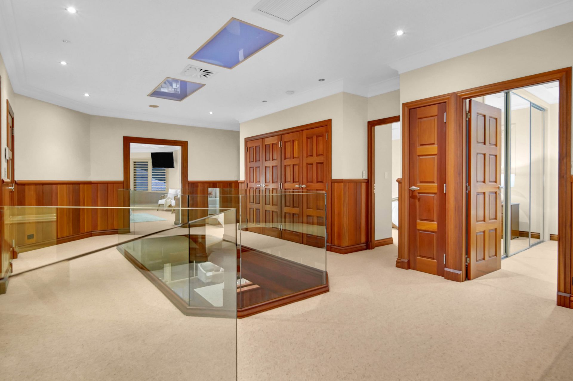Step inside the solid timber double door entry, and into a spatially extravagant foyer reminiscent of a five-star luxury resort. Soaring ceilings and glass voids direct your eyes upwards to the highest level. Gazing straight ahead you are greeted by expanses of resort-style living, dining and entertaining zones.