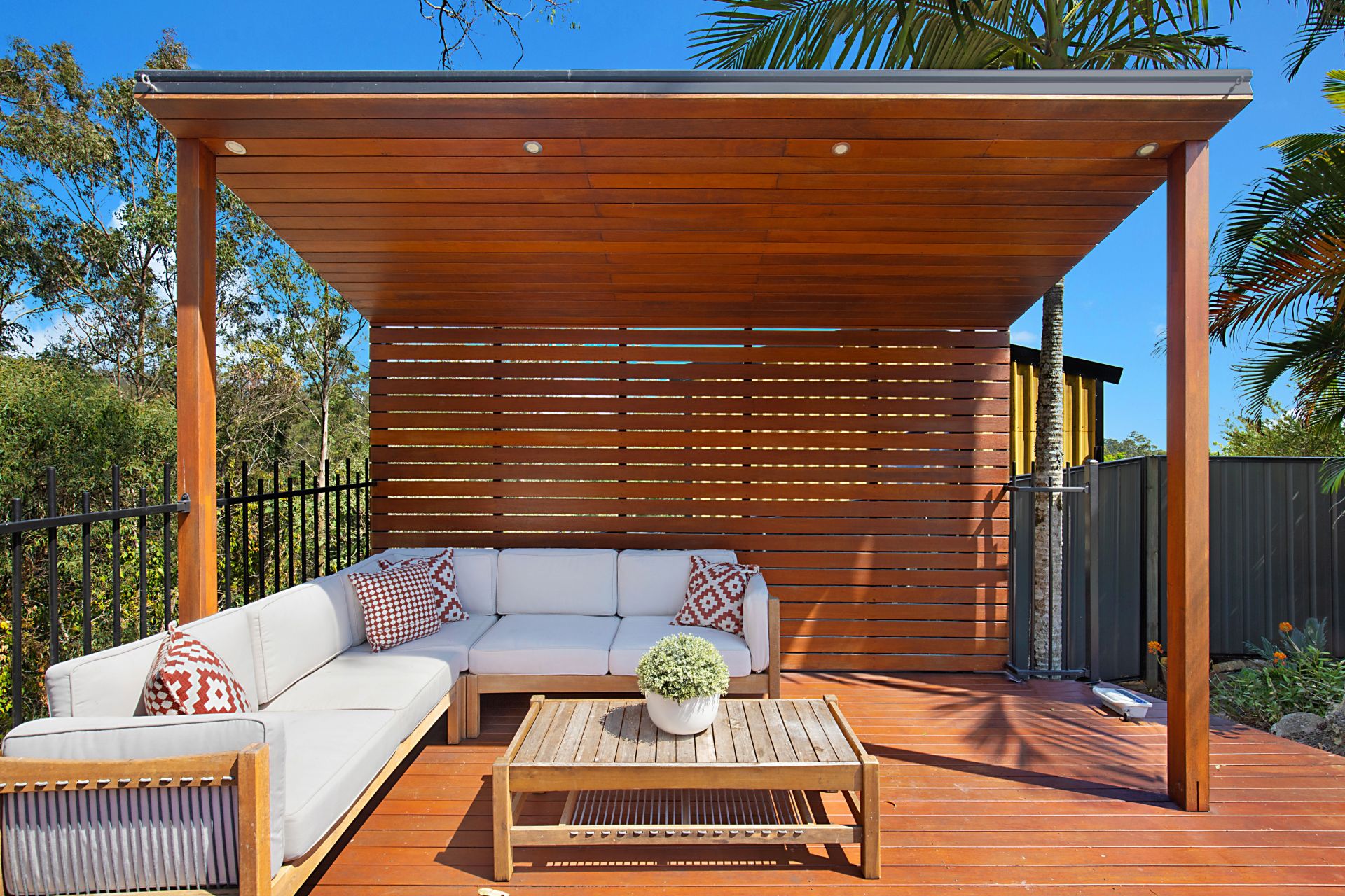 • A covered entertaining area to the side of the home, with a handy servery from the kitchen.