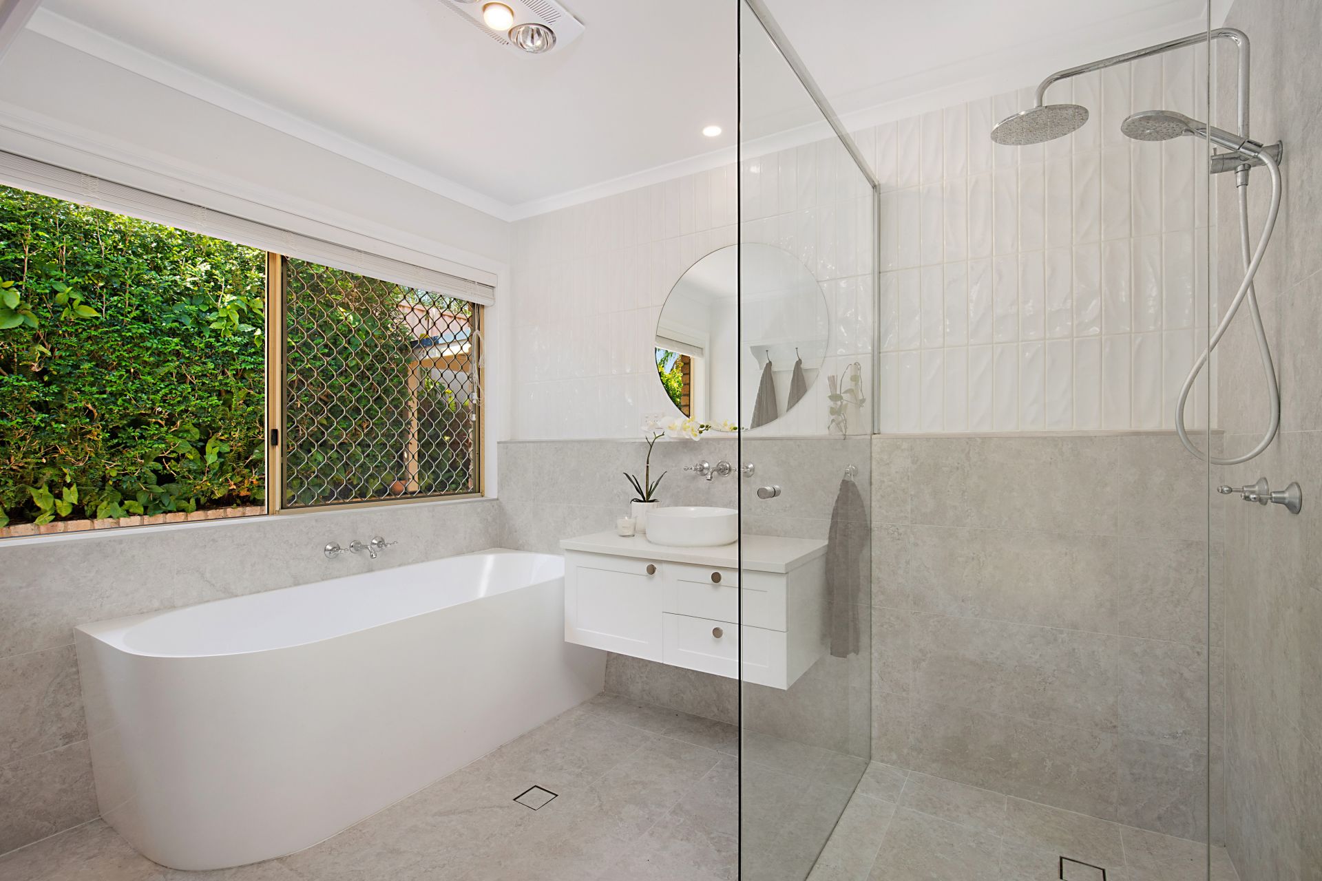 • The master bedroom is privately positioned and features a stylish ensuite with floating double sink vanity and a large walk-in robe. Enjoy access through sliding doors to your outdoor area.